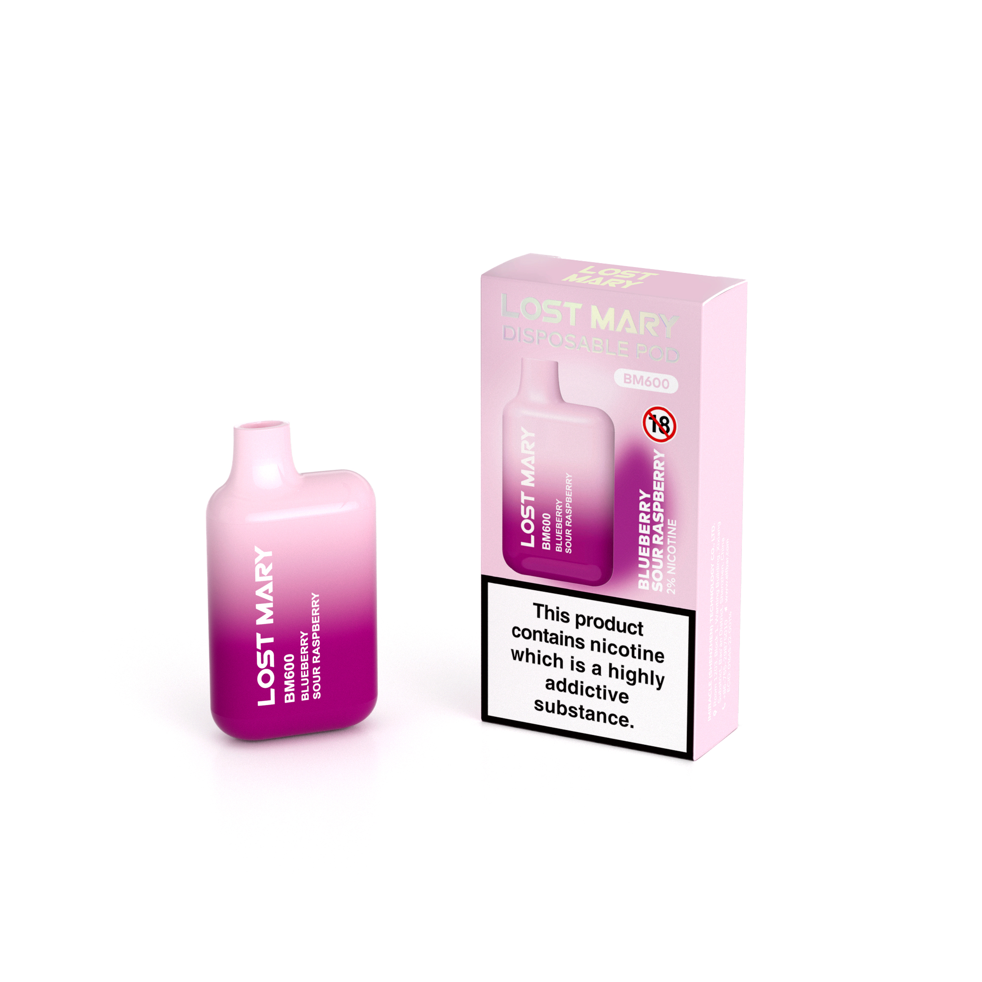 Lost Mary BM600 Blueberry Sour Raspberry offers a flavourful combination of sweet blueberries and tangy raspberries for a fruity vaping experience.
